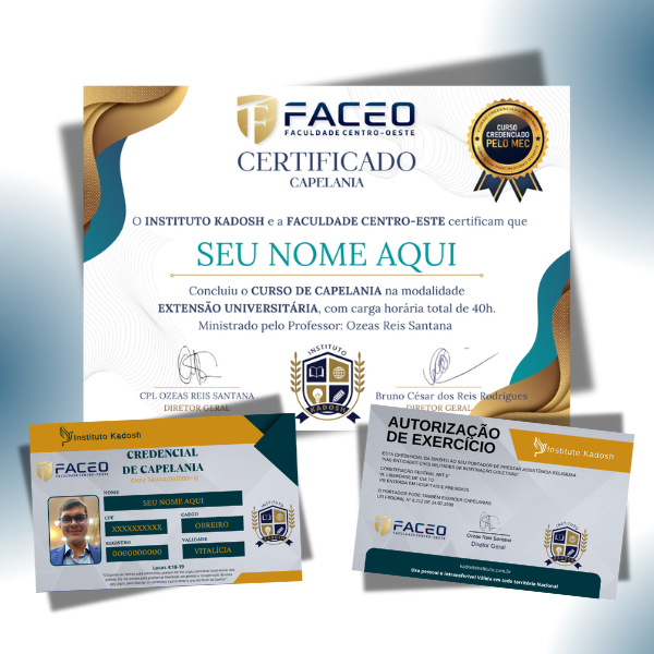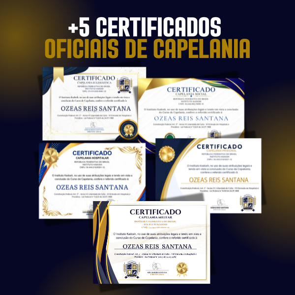 Multiplique seu reconhecimento com +5 certificados oficiais de capelania e destaque-se no ministério!Por apenas mais: R$19,99